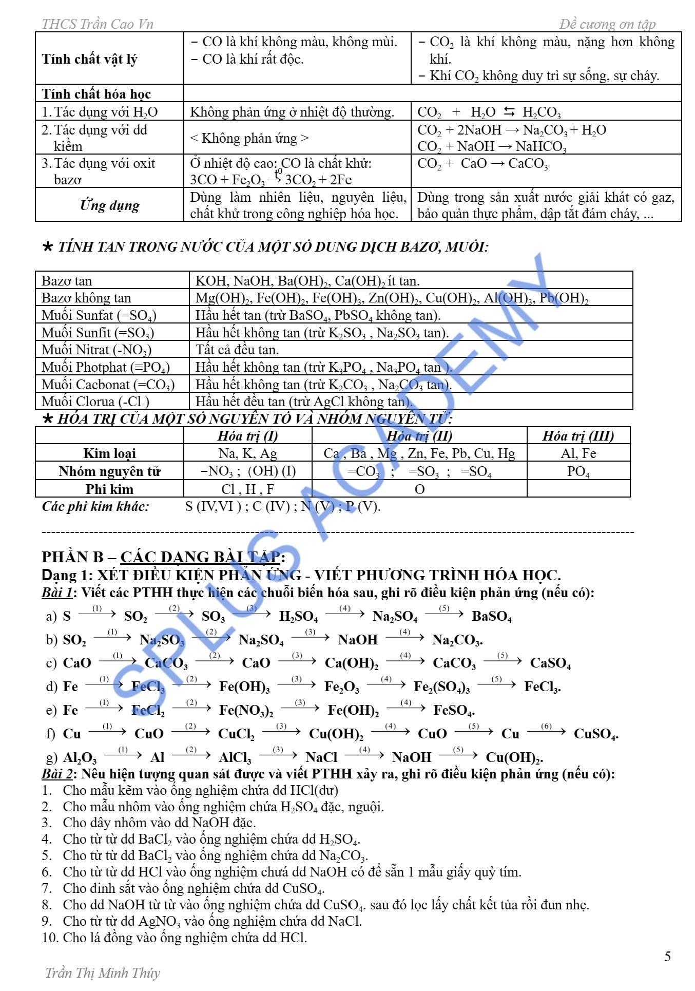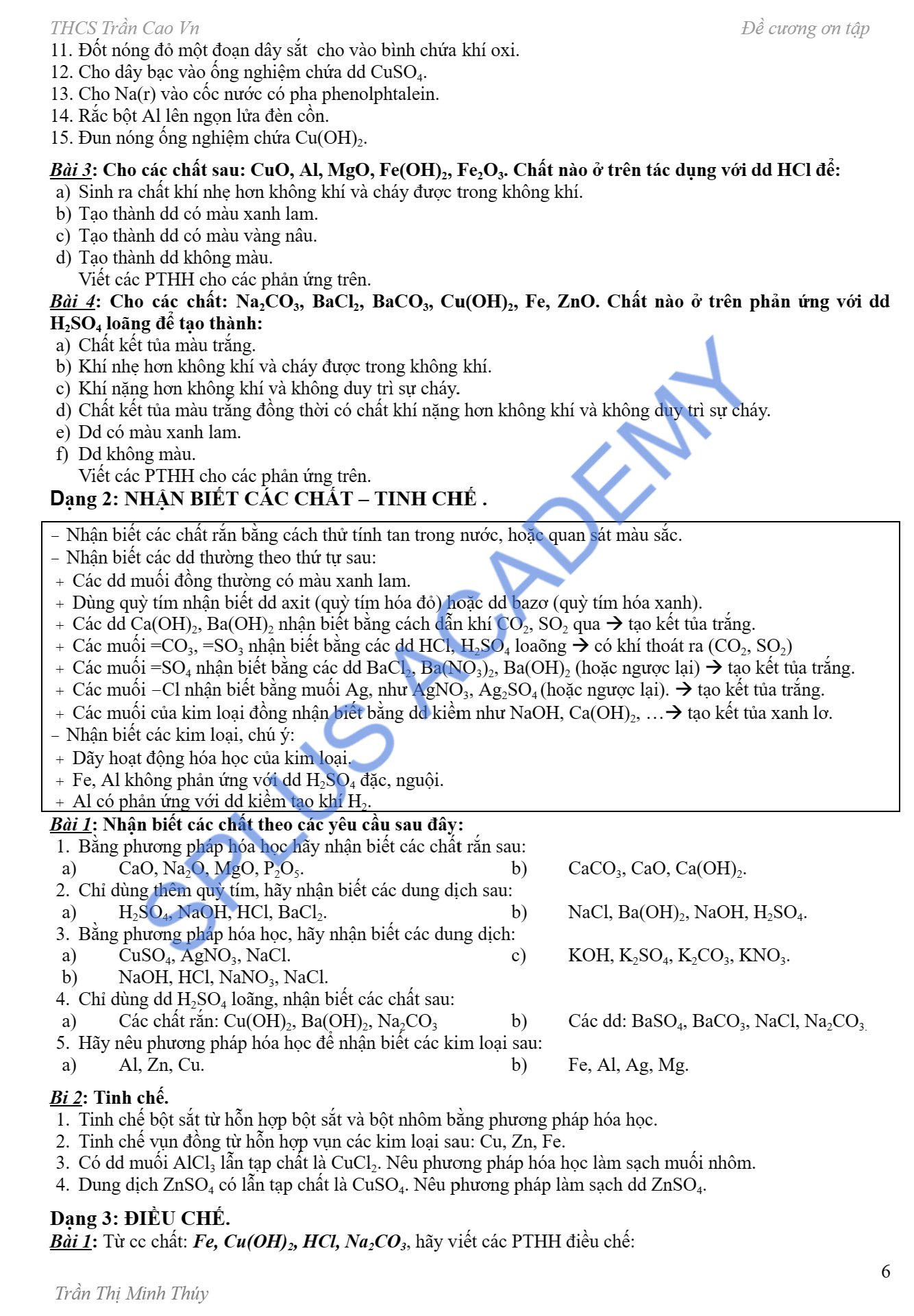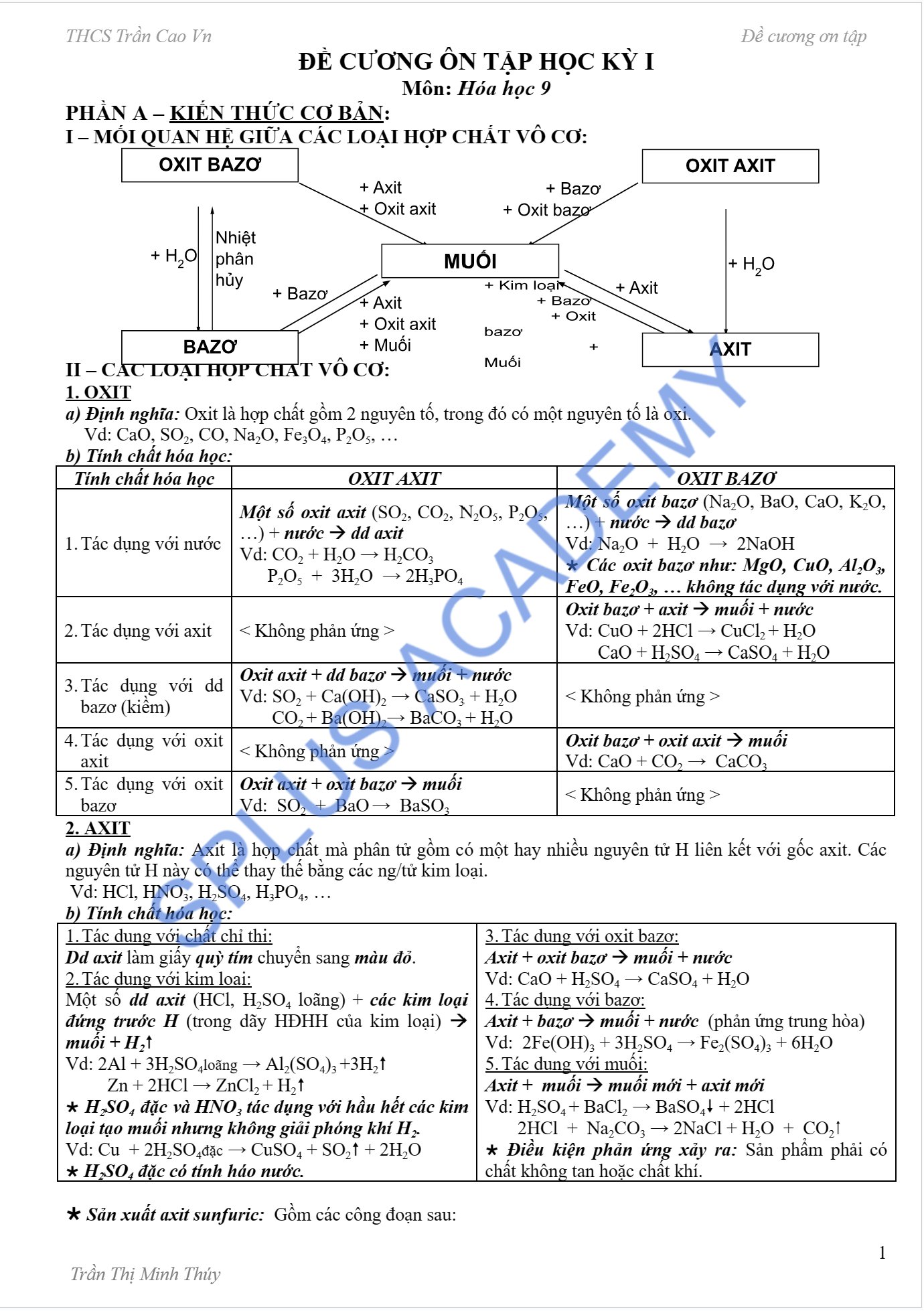 Đề cương ôn tập học kì 1 môn Hóa học lớp 9 chọn lọc