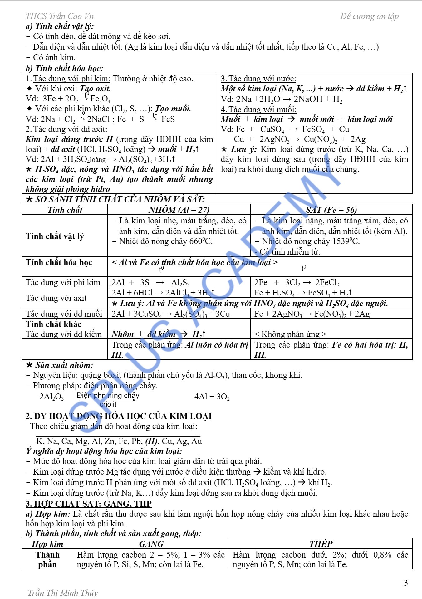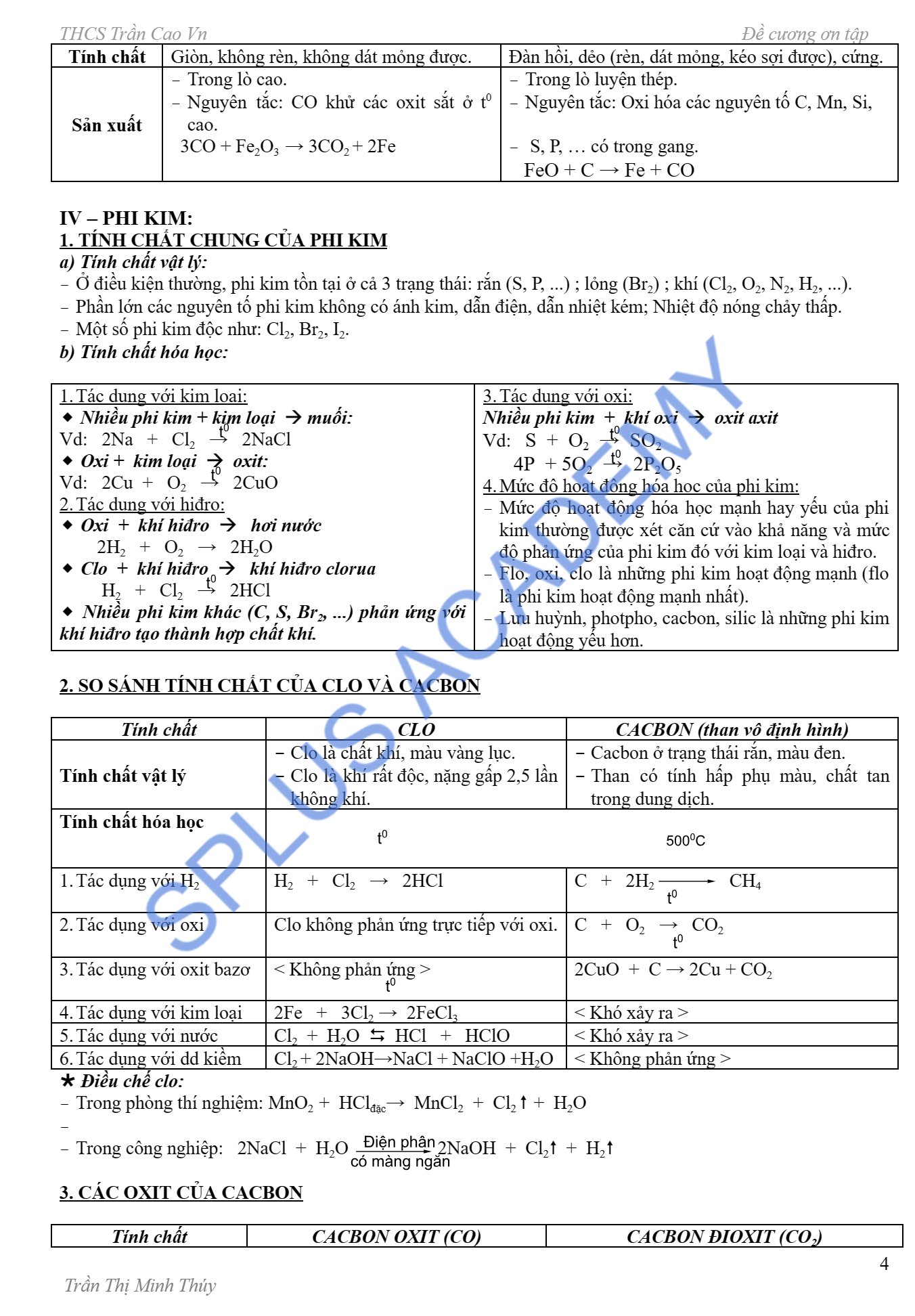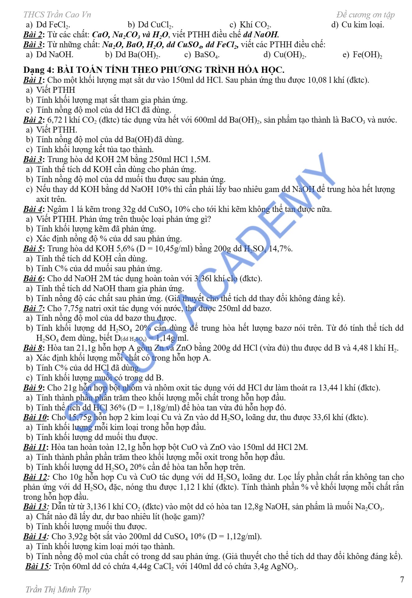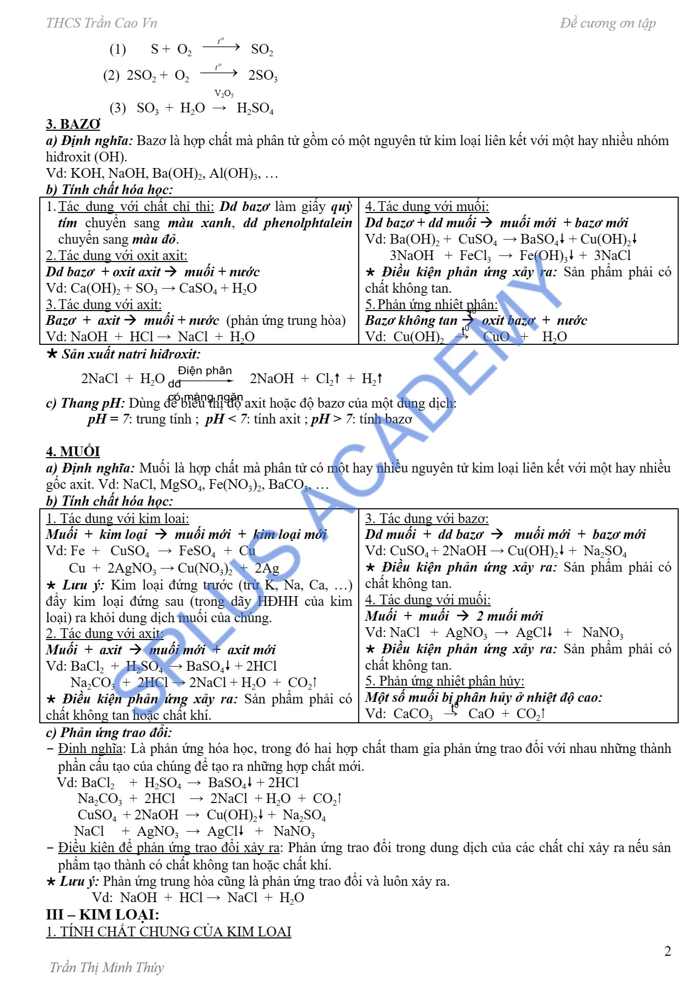 Đề cương ôn tập học kì 1 môn Hóa học lớp 9 chọn lọc