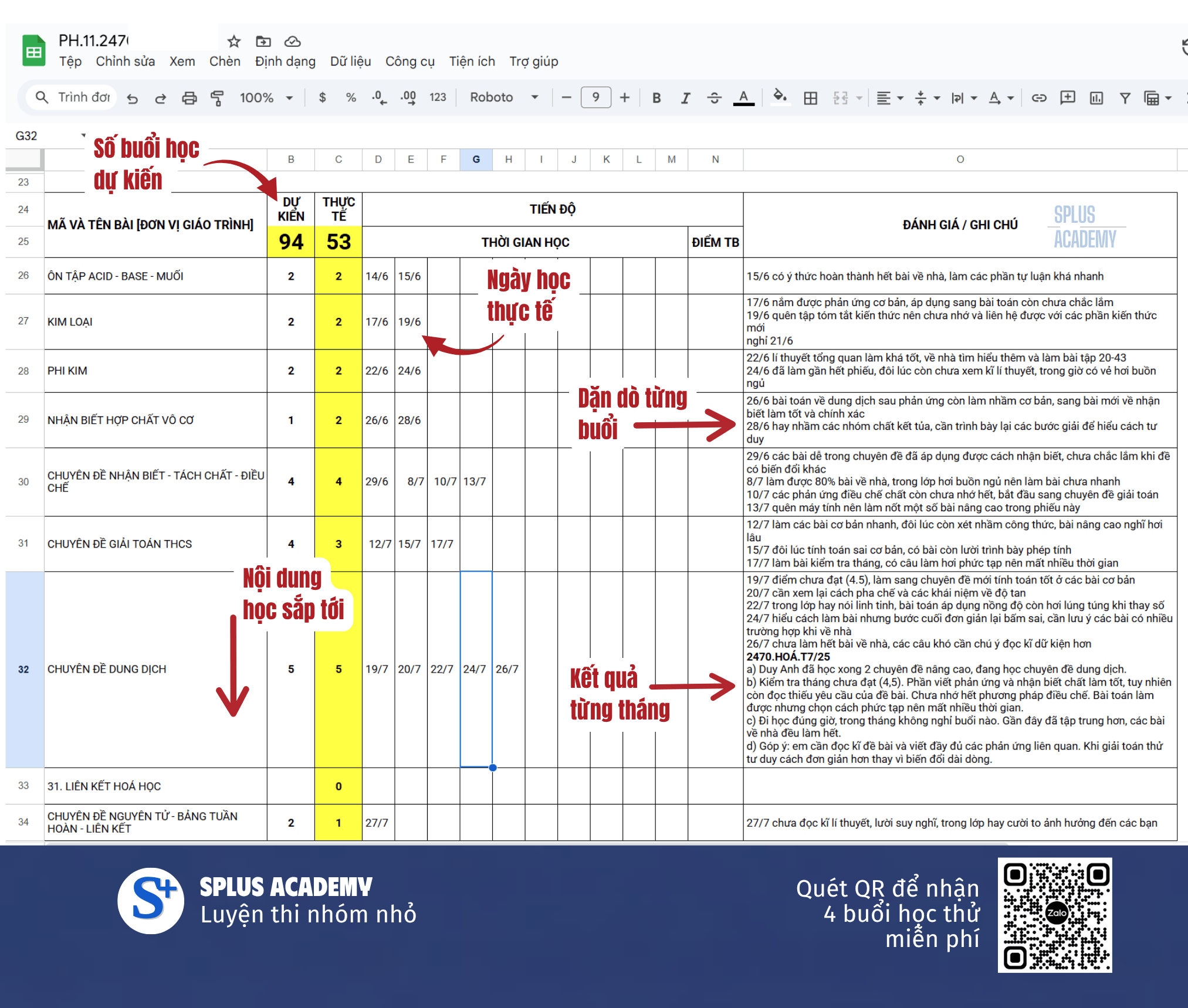 Đến với S+, mỗi học viên sẽ được giáo viên xây dựng lộ trình riêng theo năng lực và nhu cầu, dựa vào năng lực tiếp thu và mục tiêu điểm số. Các bạn có thể tham khảo một số lộ trình mẫu dưới đây của học viên đã từng theo học S+ (bấm vào tên môn hoặc lớp để xem).