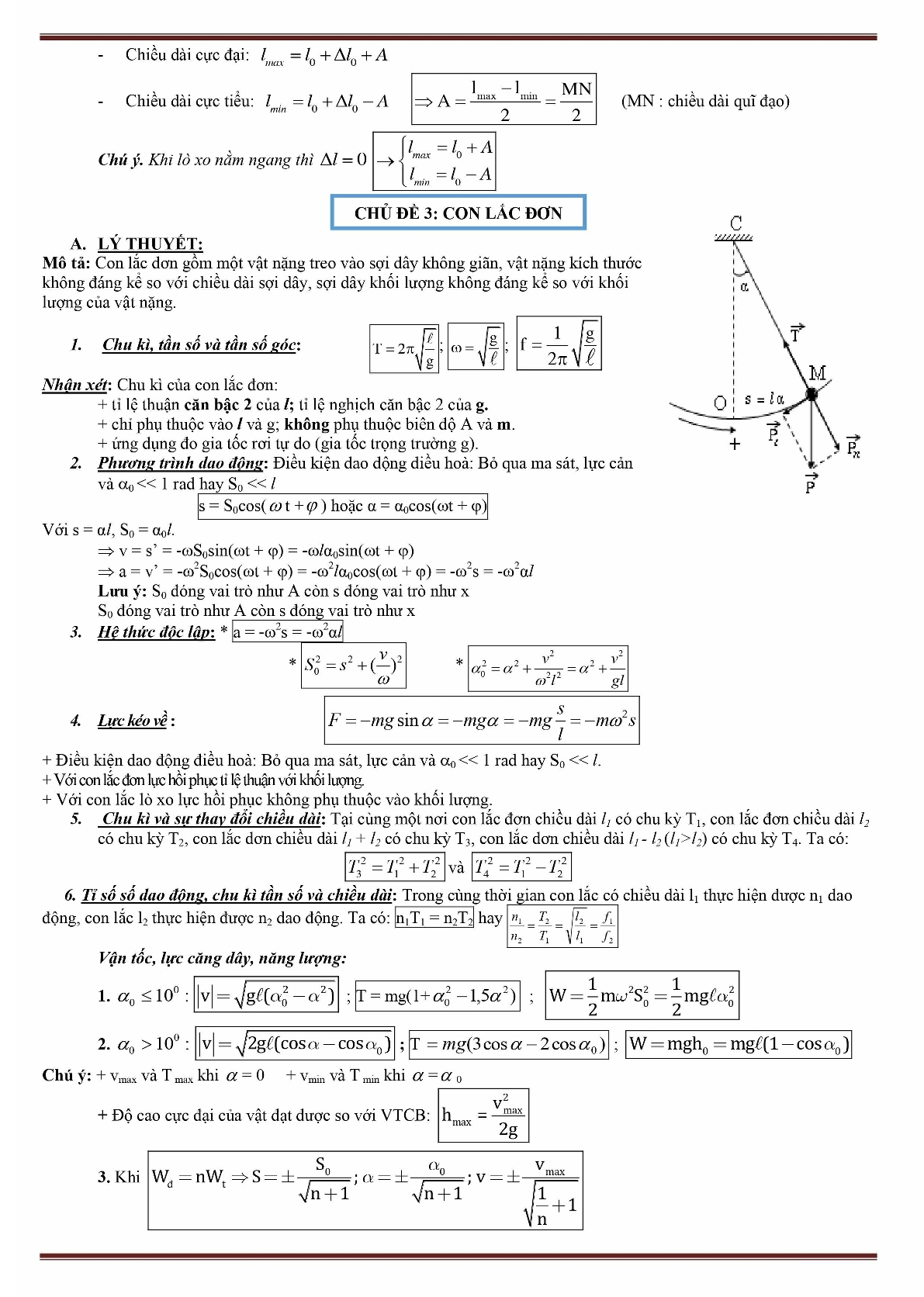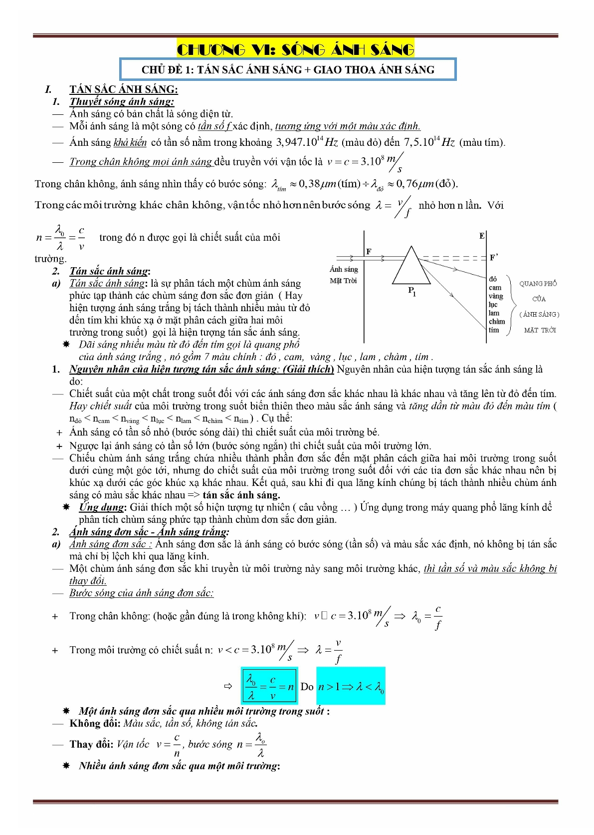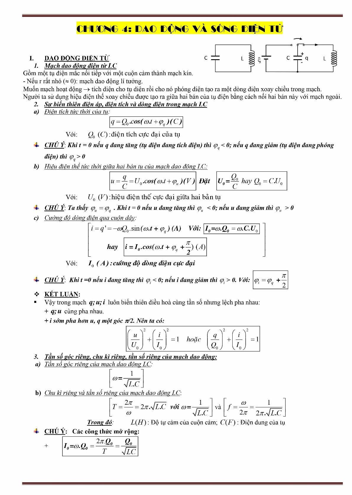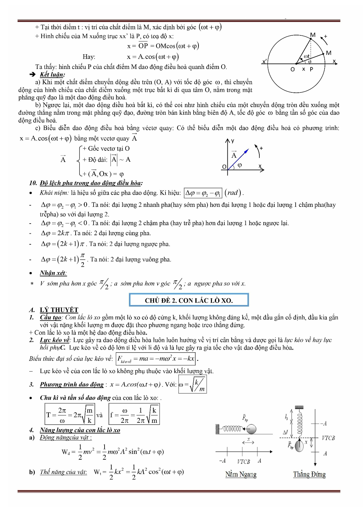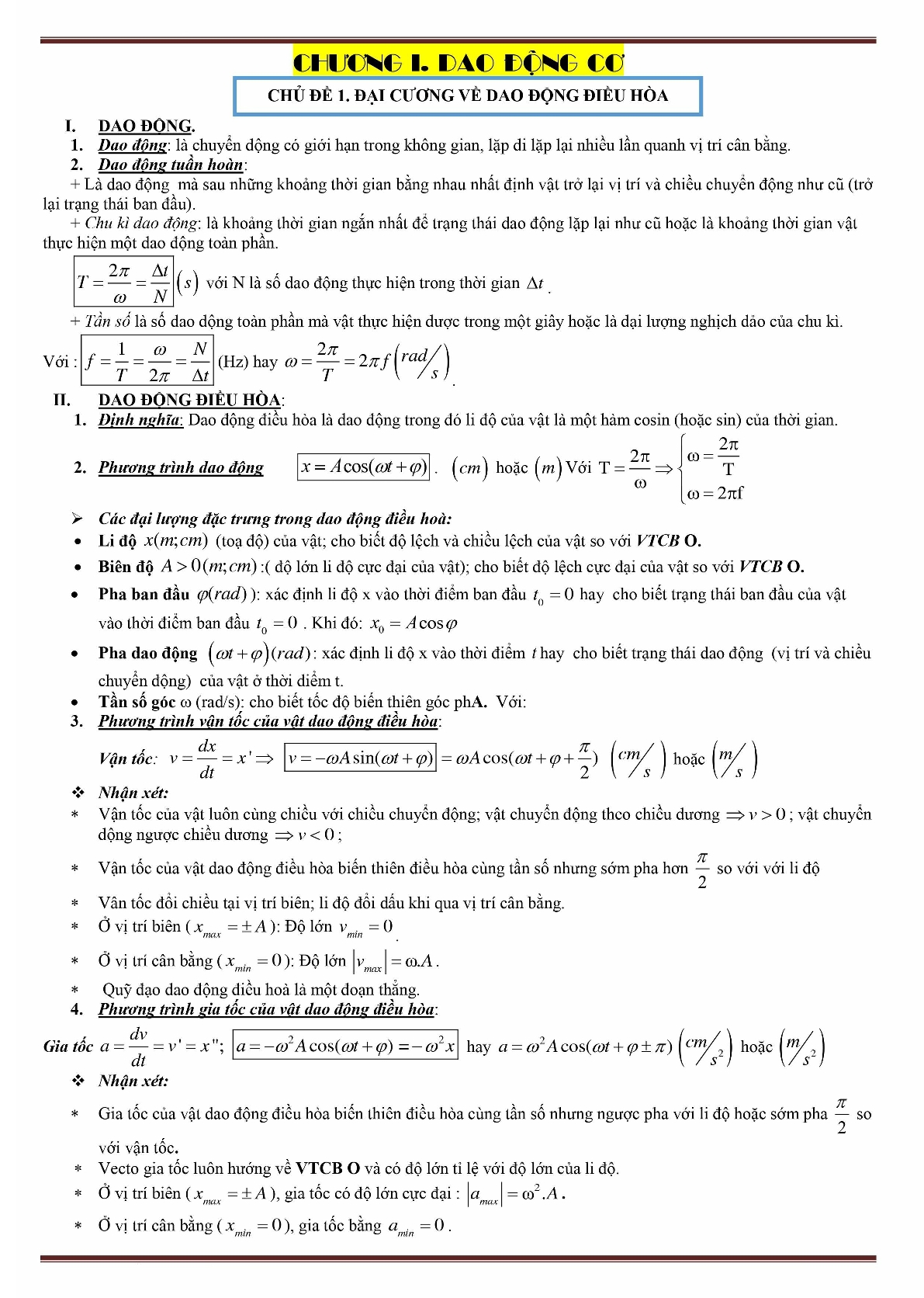 Tài liệu tóm tắt lý thuyết và công thức vật lí 12 ôn thi đại học bao gồm 7 chương quan trọng trong bài thi Phổ thông Quốc gia