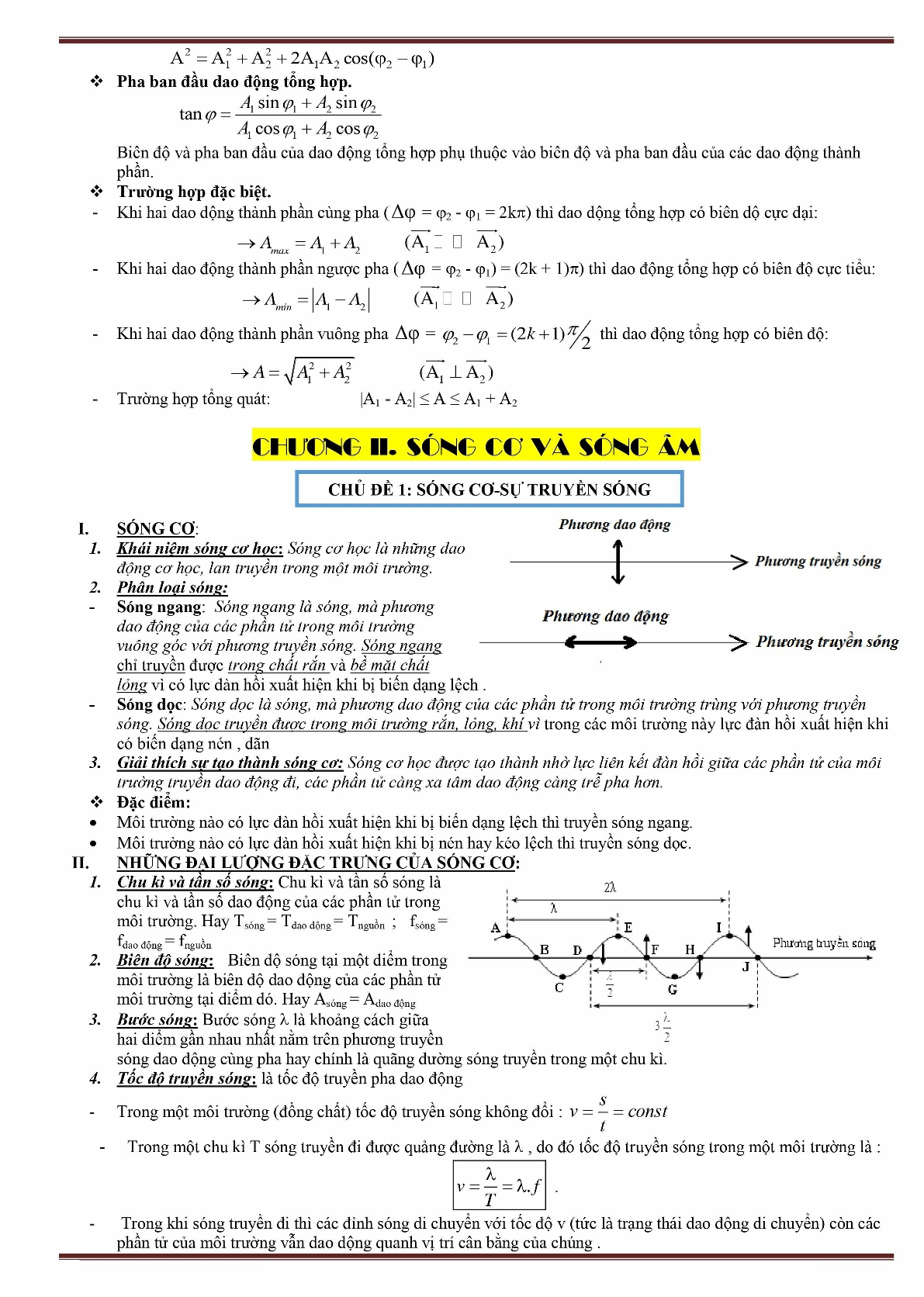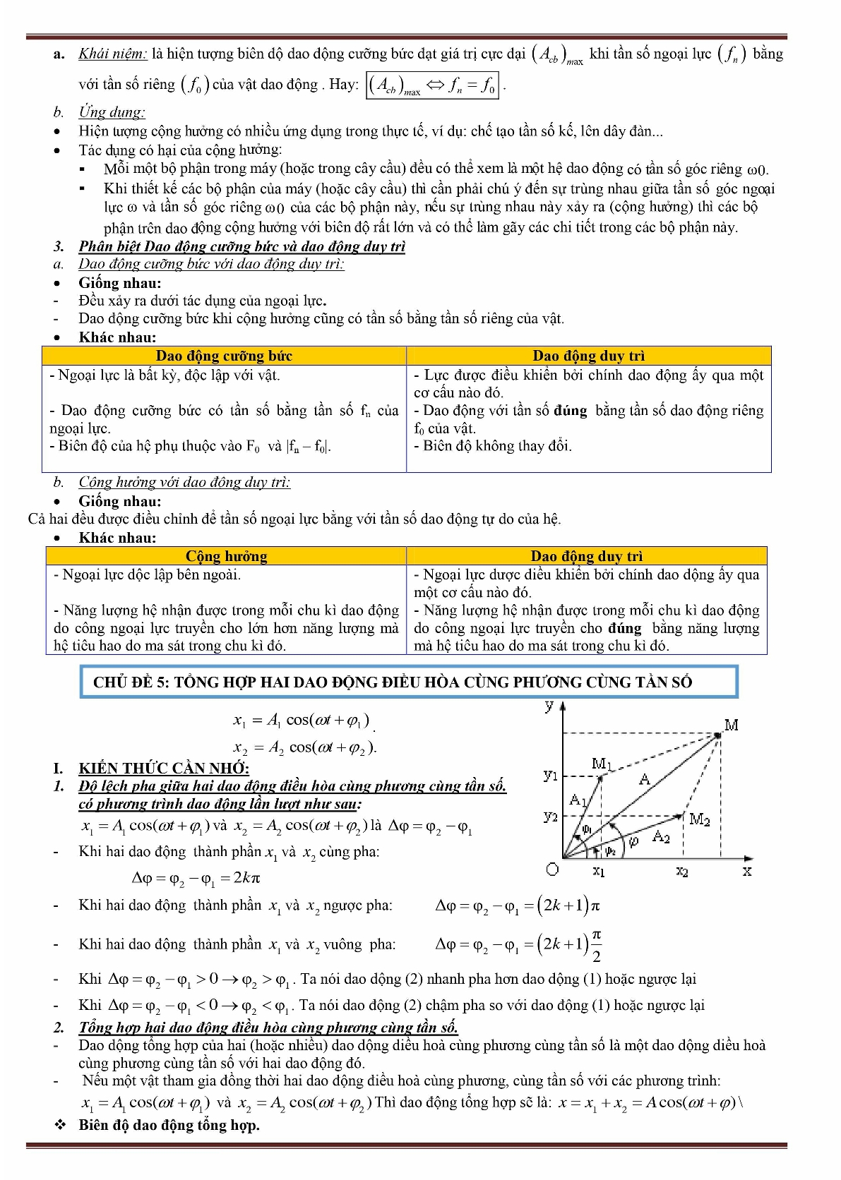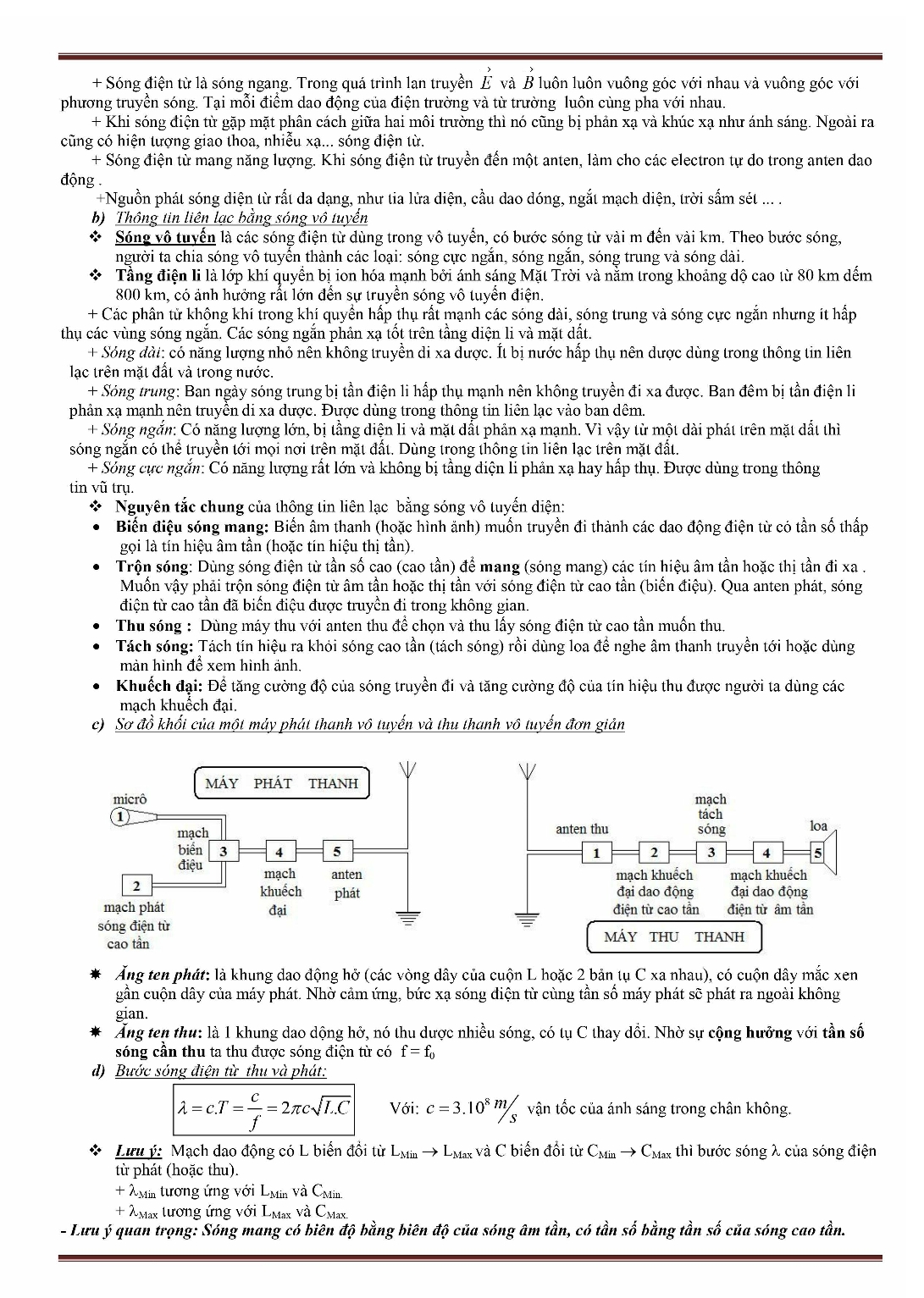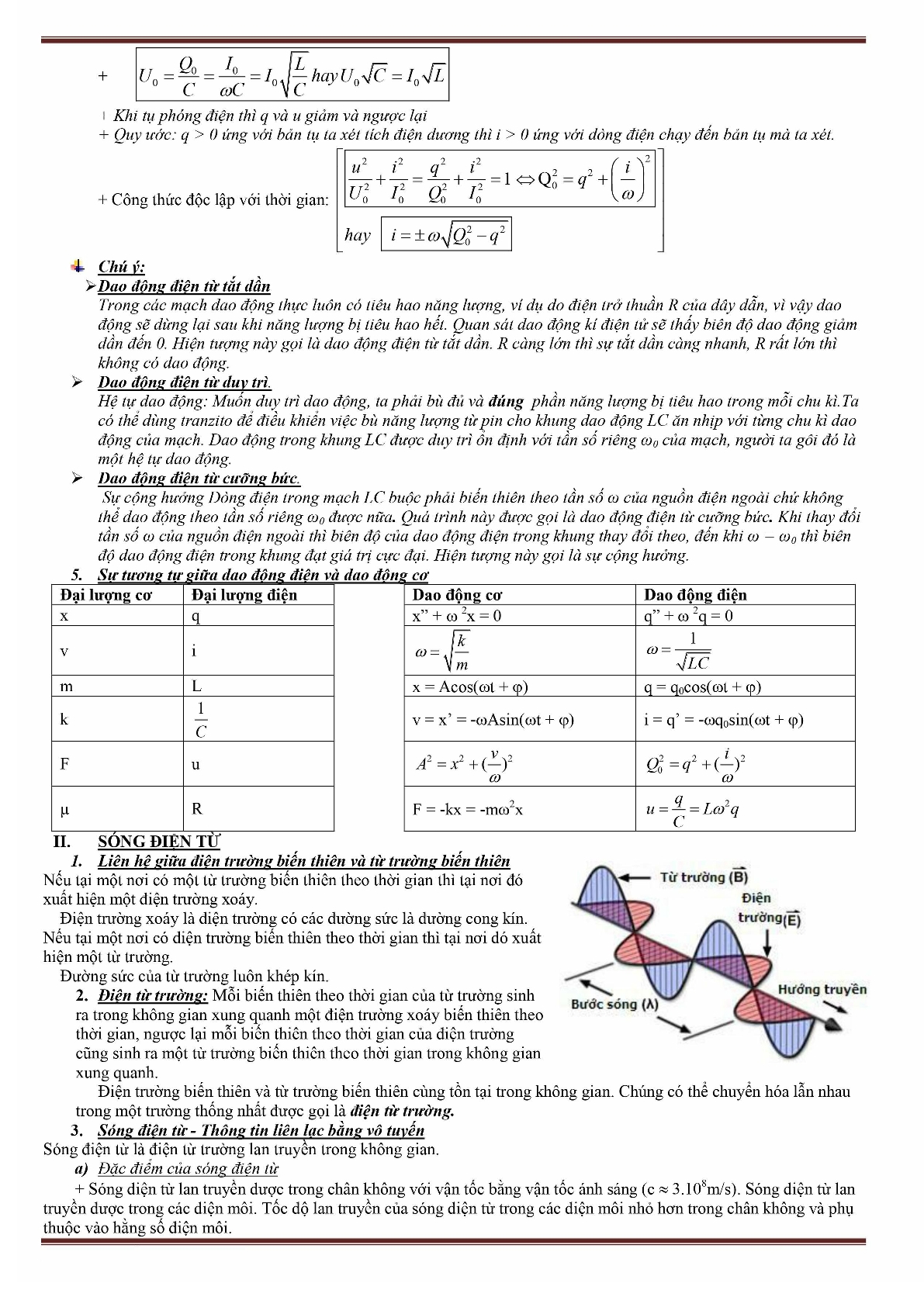 Tài liệu tóm tắt lý thuyết và công thức vật lí 12 ôn thi đại học bao gồm 7 chương quan trọng trong bài thi Phổ thông Quốc gia