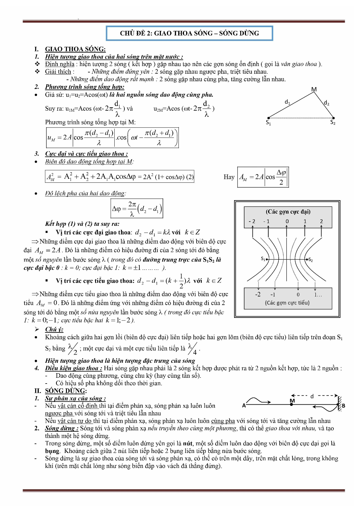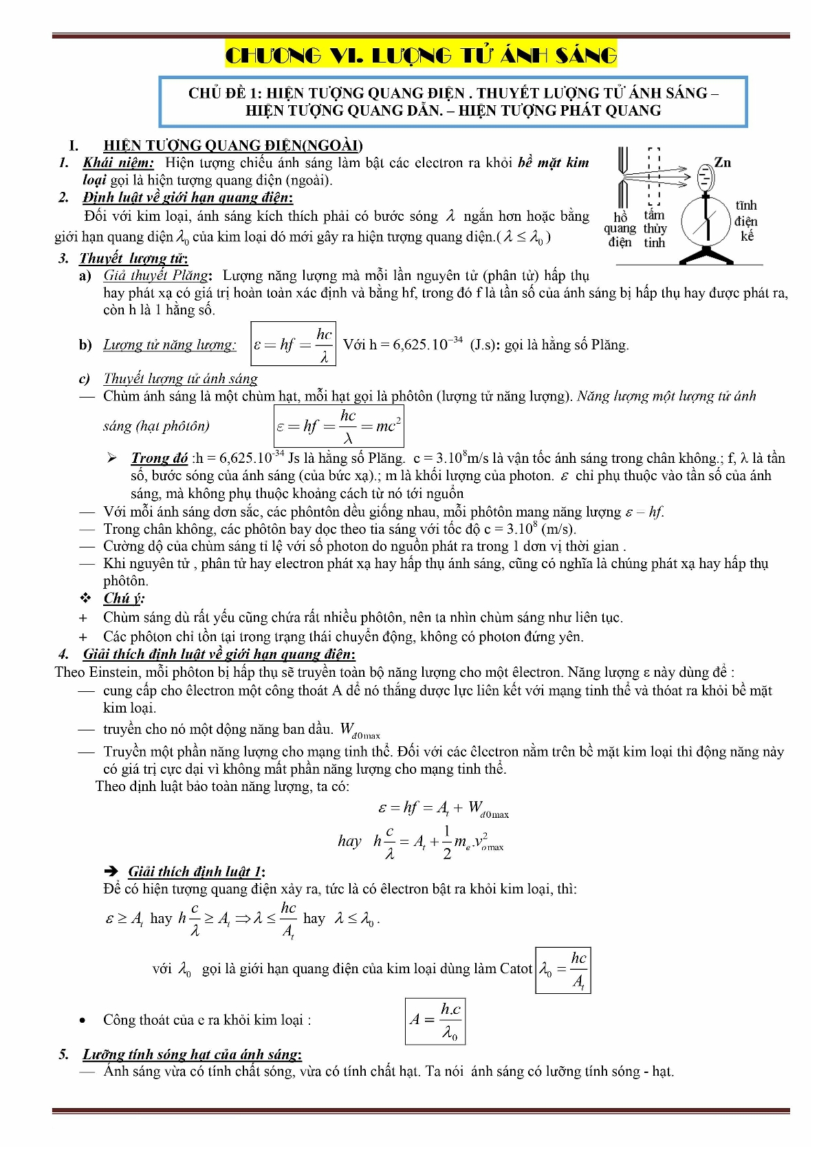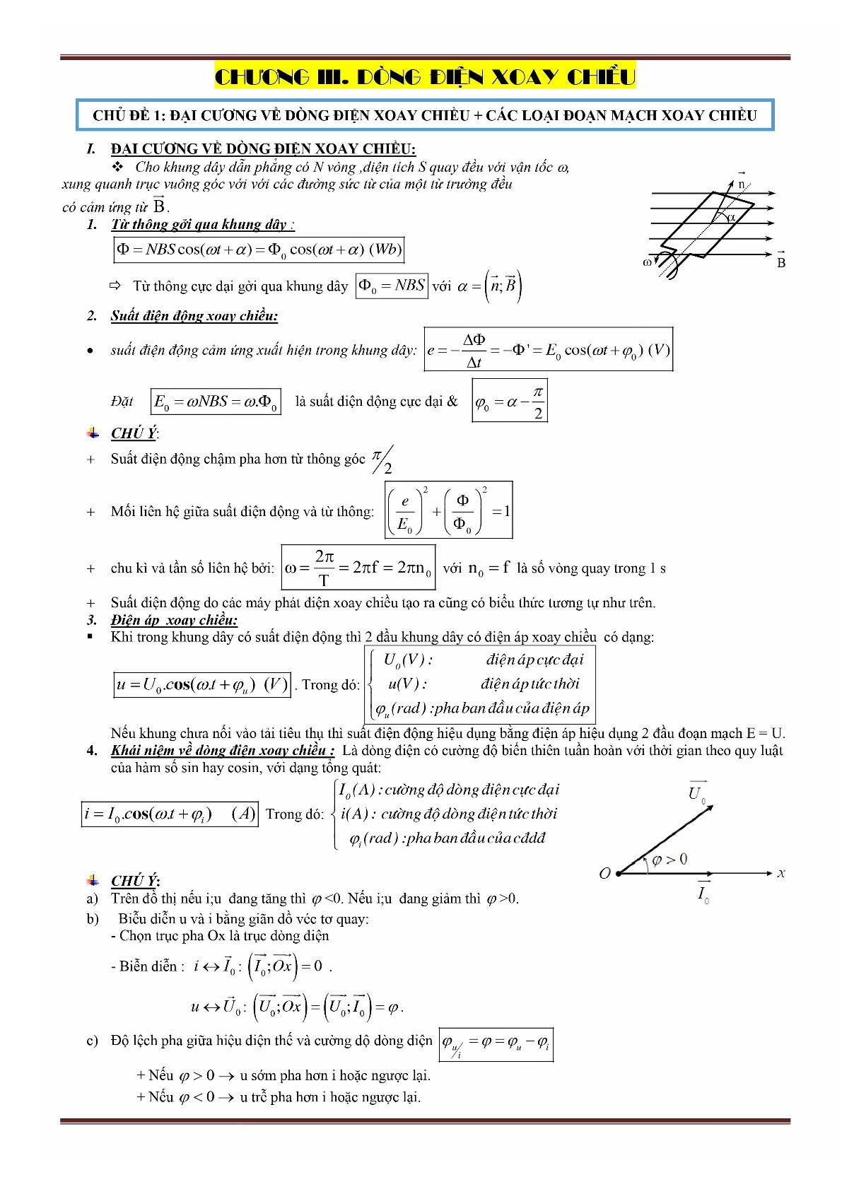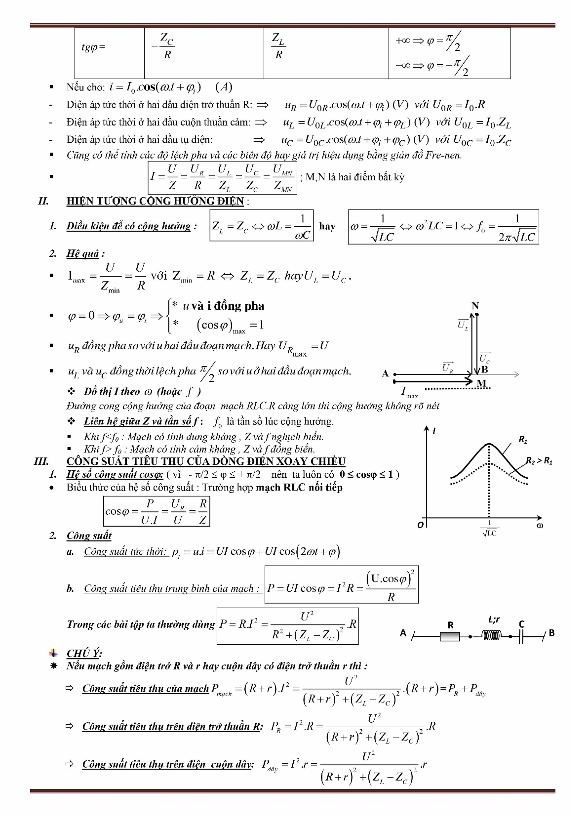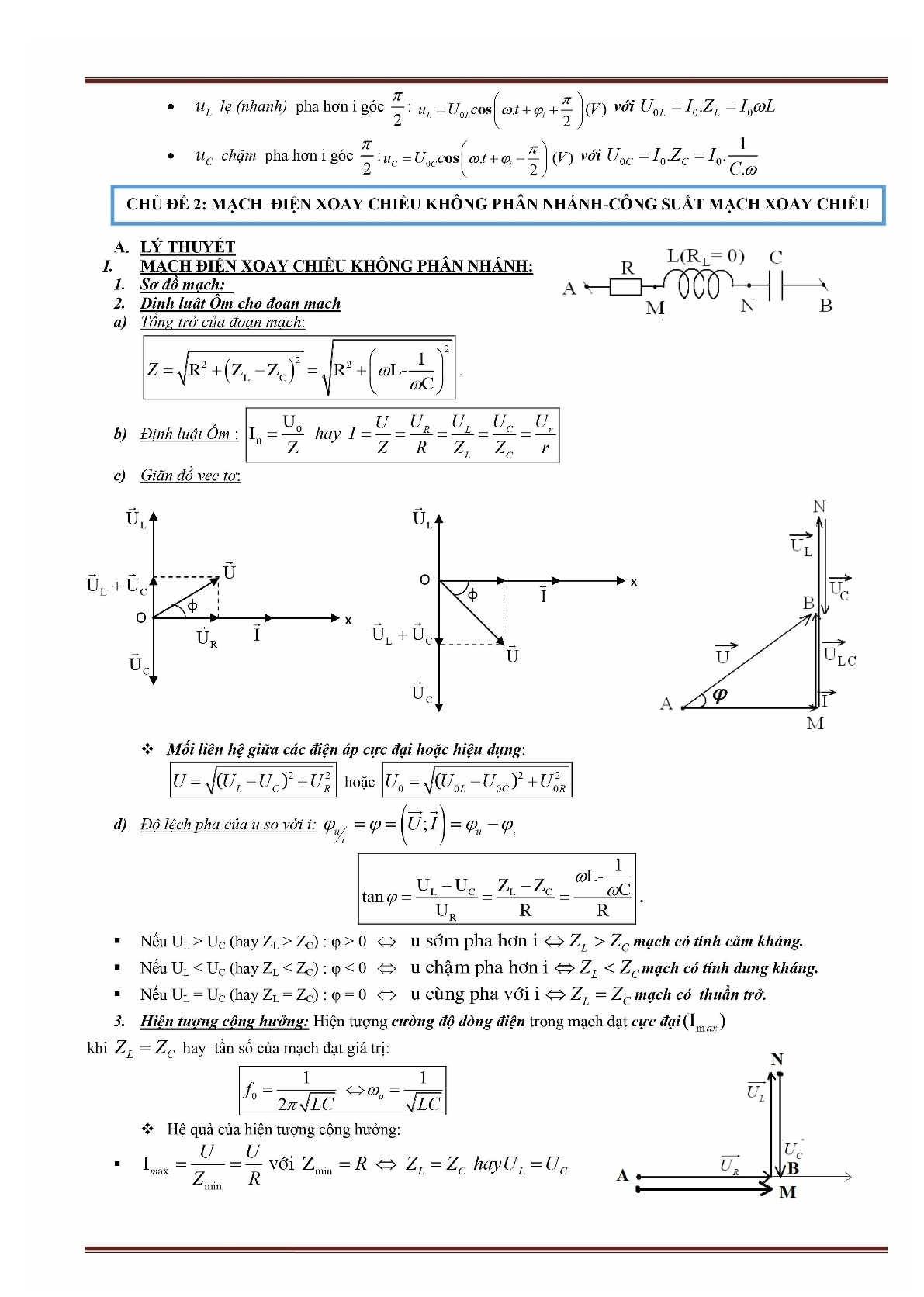 Tài liệu tóm tắt lý thuyết và công thức vật lí 12 ôn thi đại học bao gồm 7 chương quan trọng trong bài thi Phổ thông Quốc gia