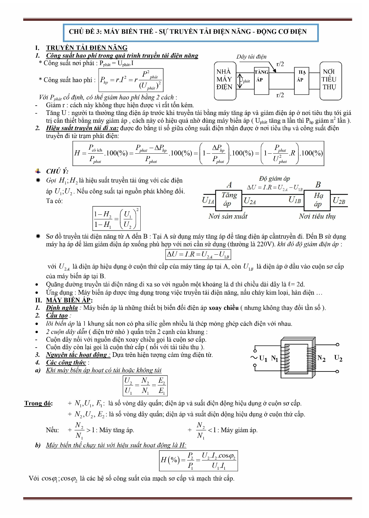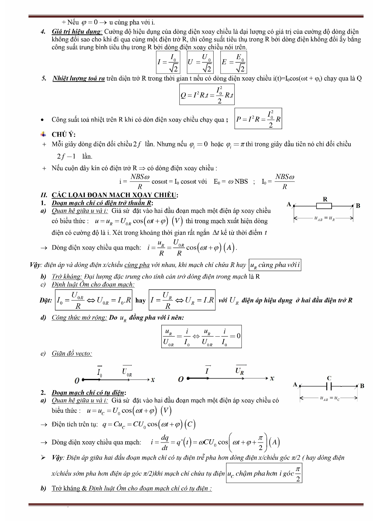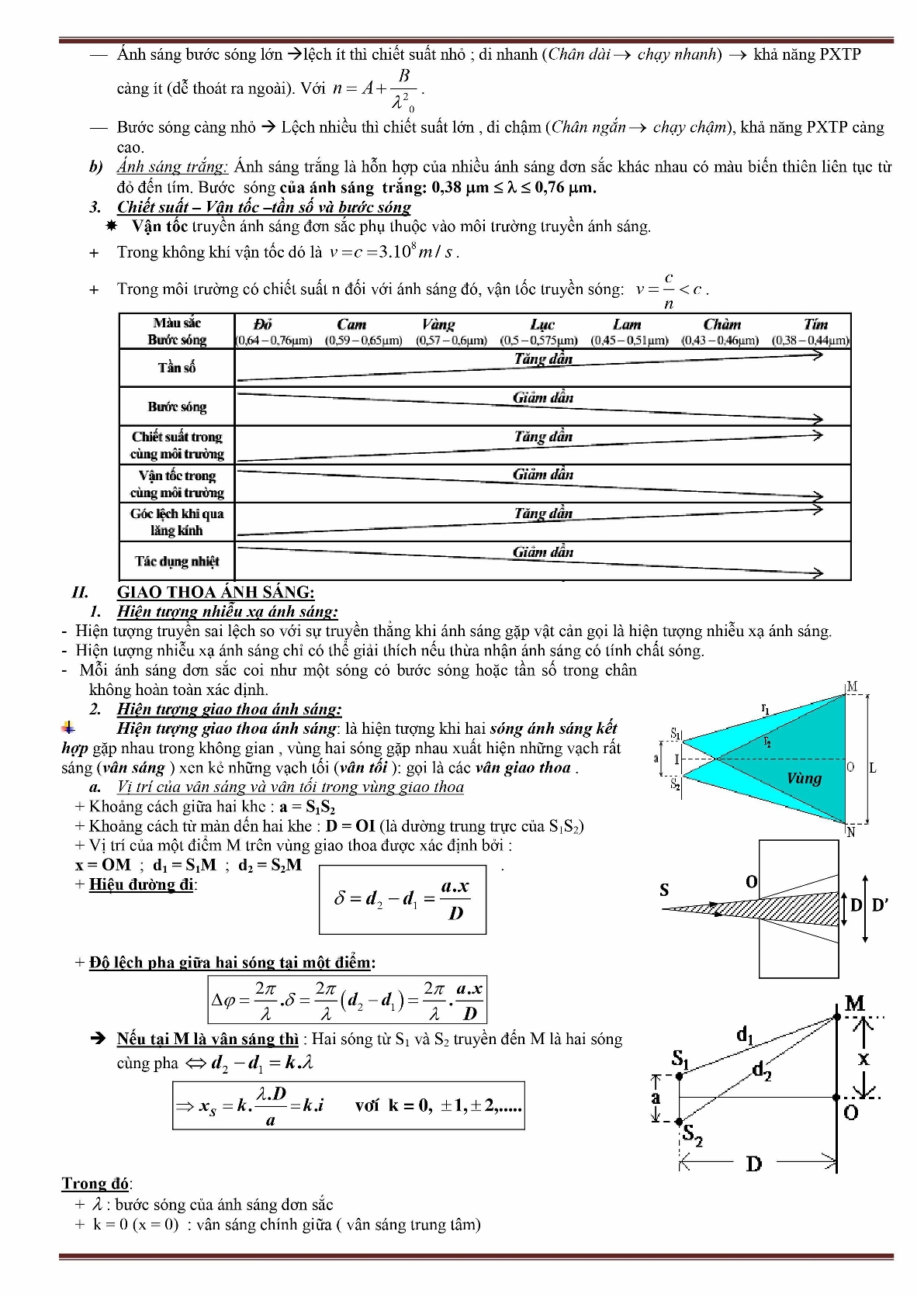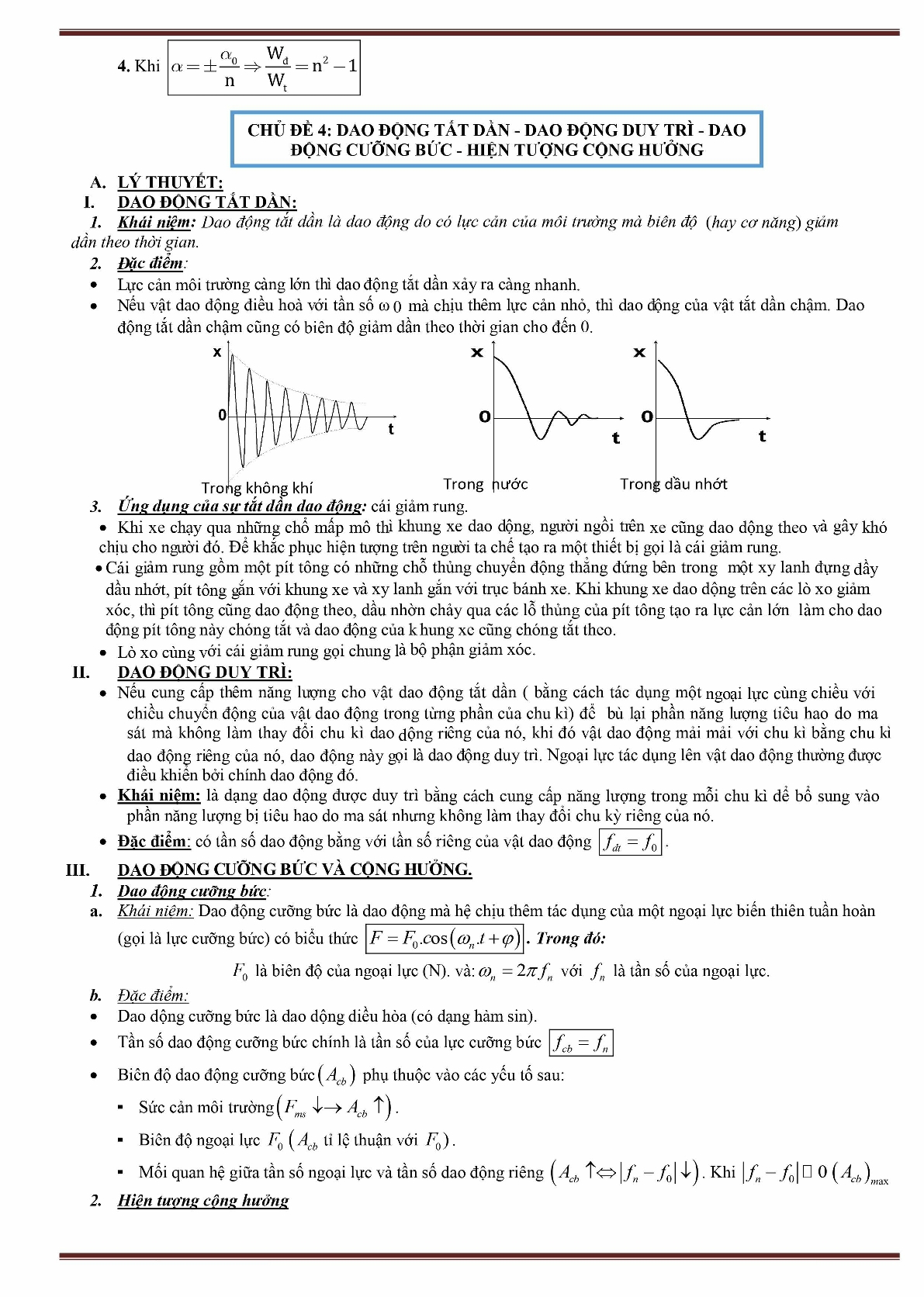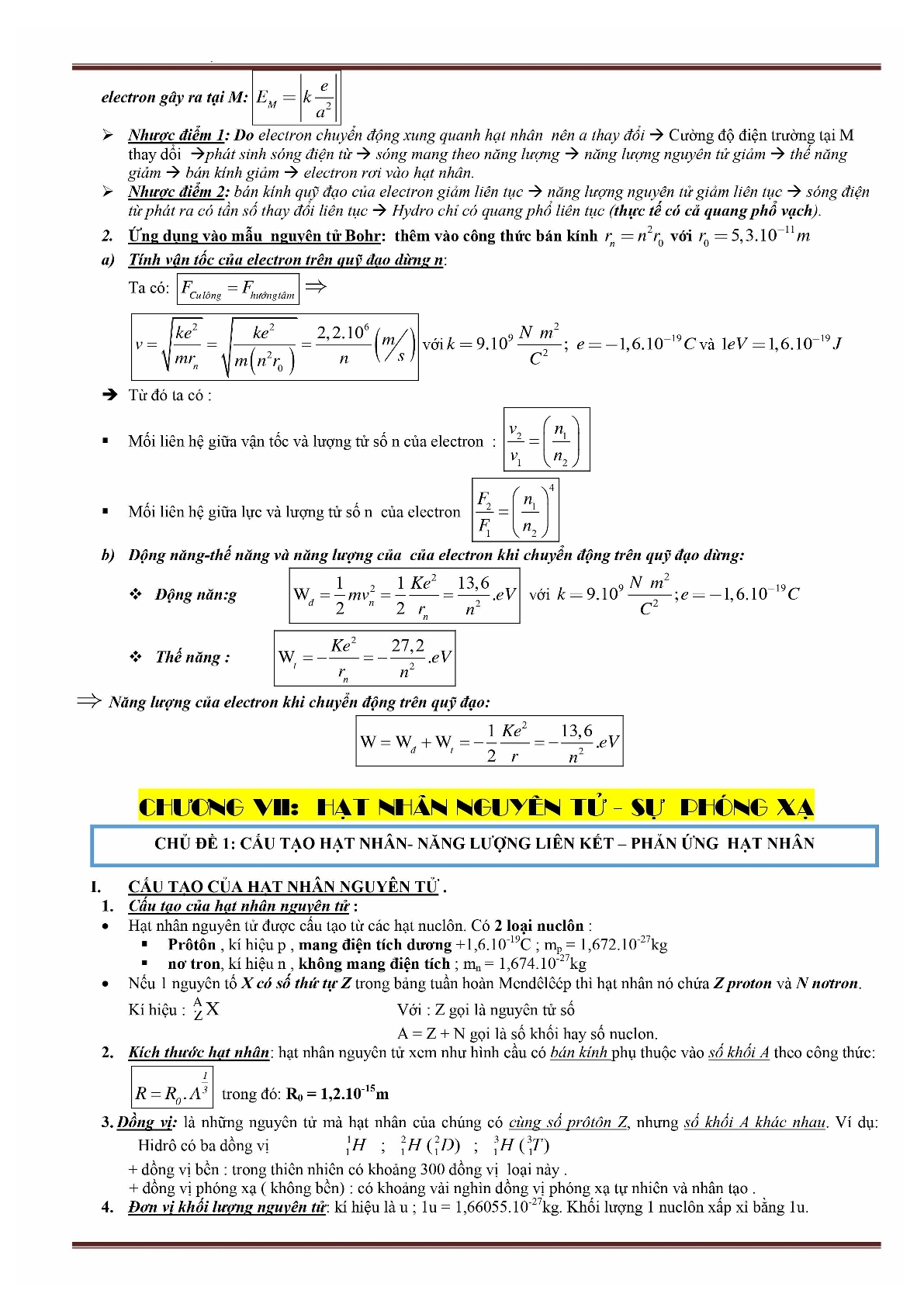 Tài liệu tóm tắt lý thuyết và công thức vật lí 12 ôn thi đại học bao gồm 7 chương quan trọng trong bài thi Phổ thông Quốc gia